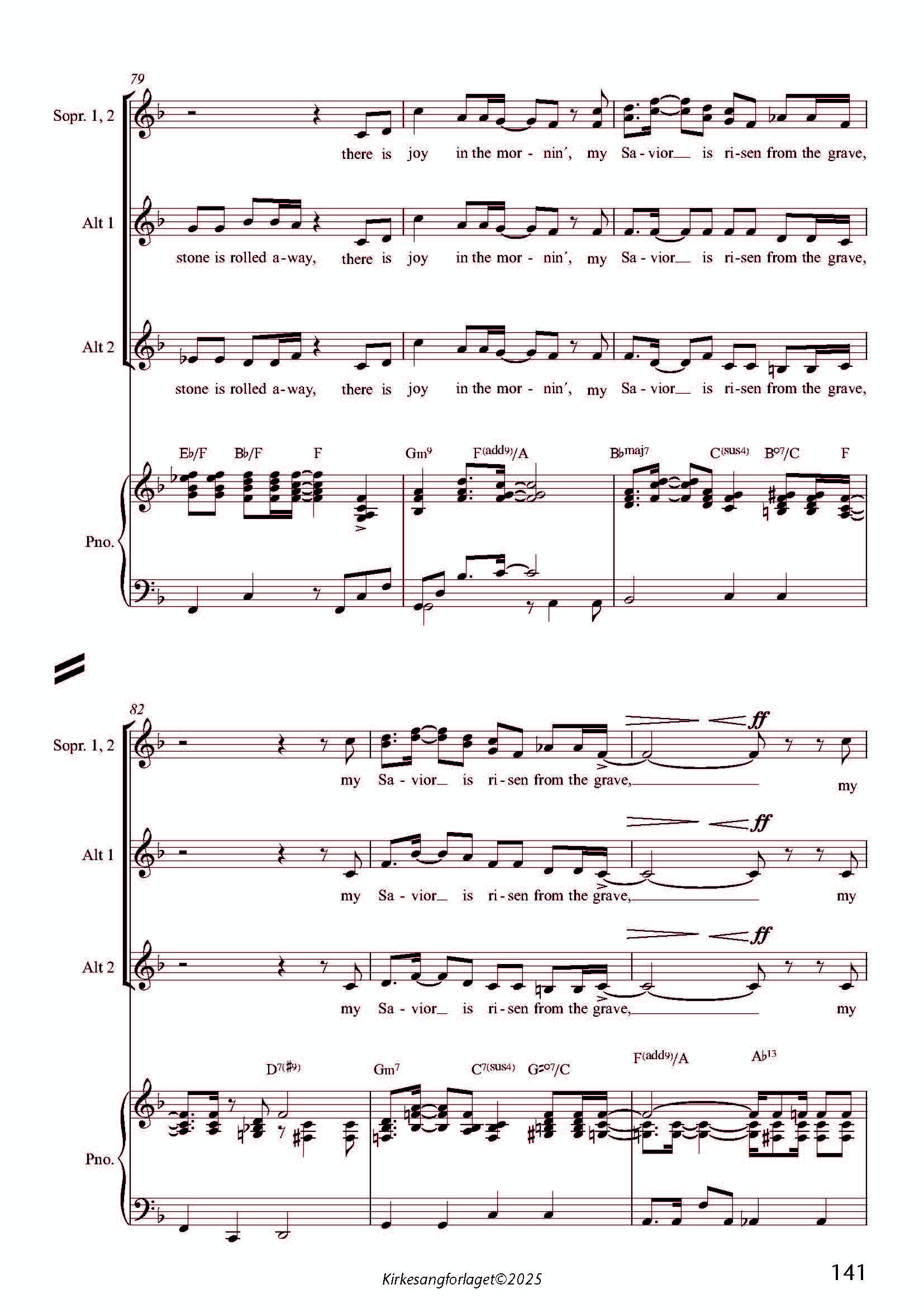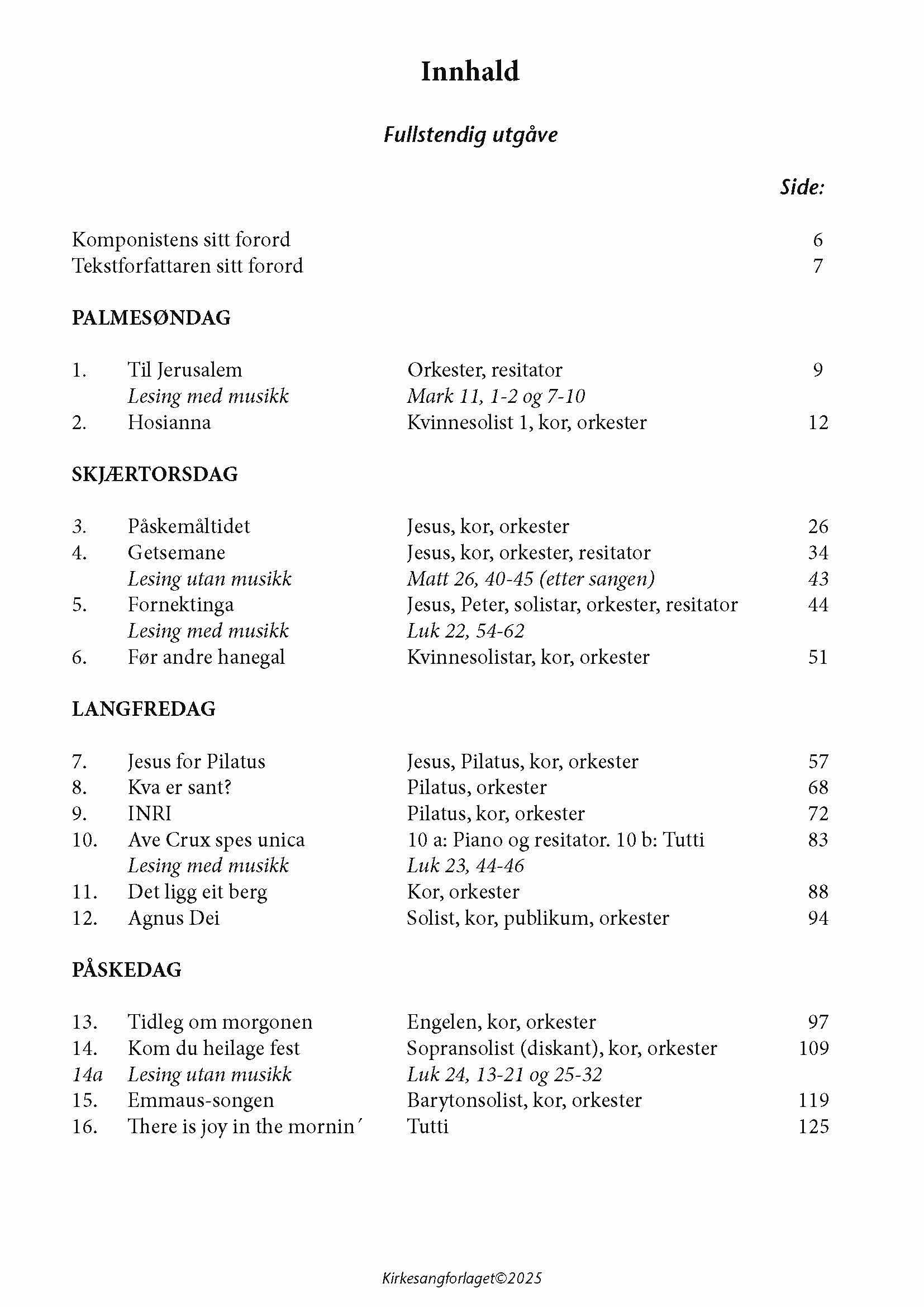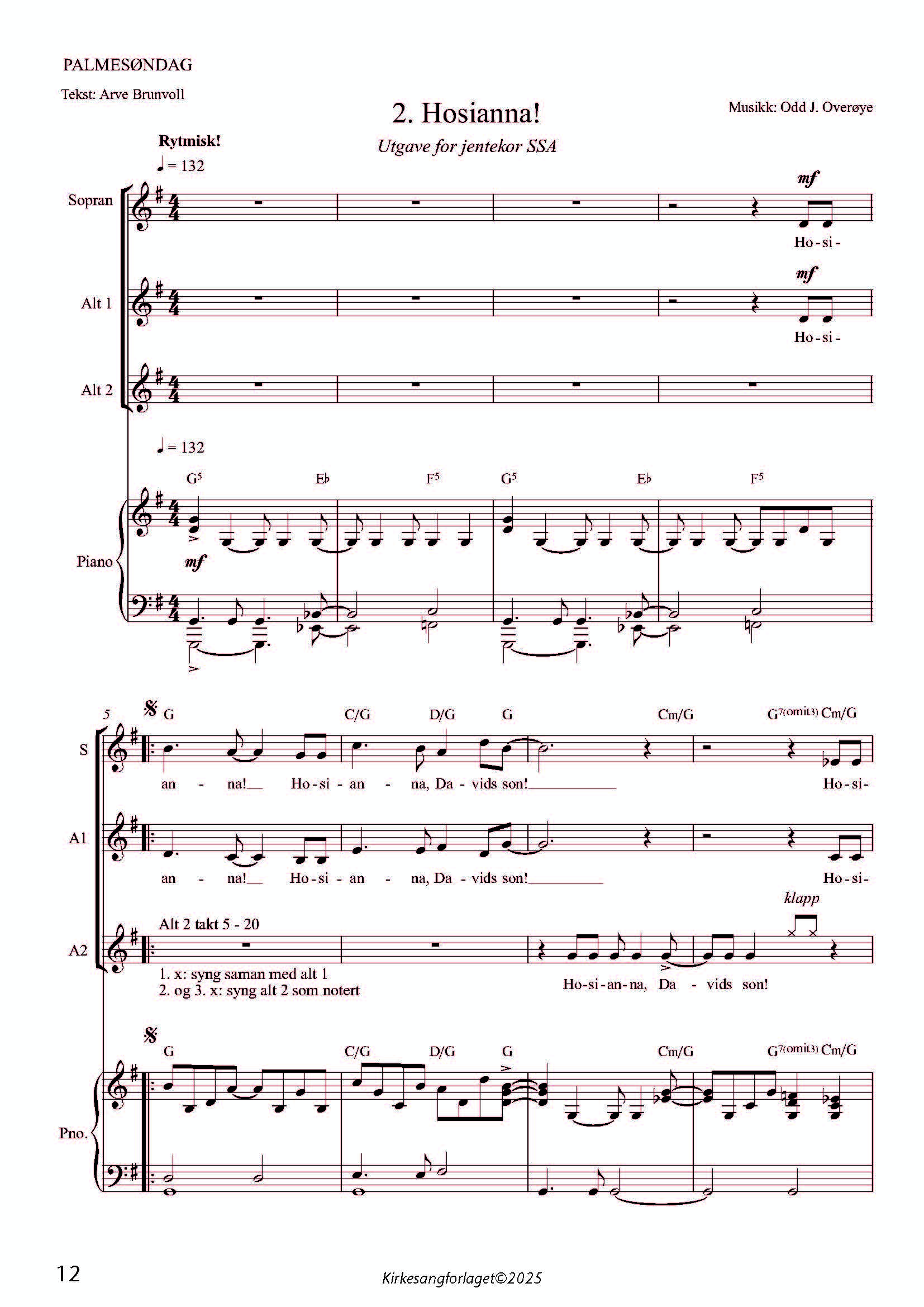 for kor SSA, solistar, klaver, keyboard/orgel, gitar, bass, fløyte/saksofon og slagverk